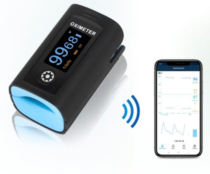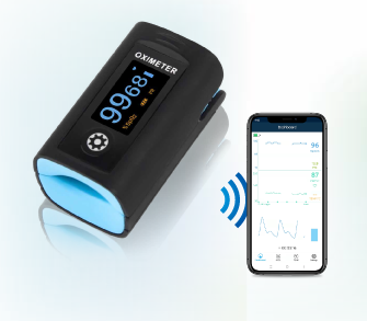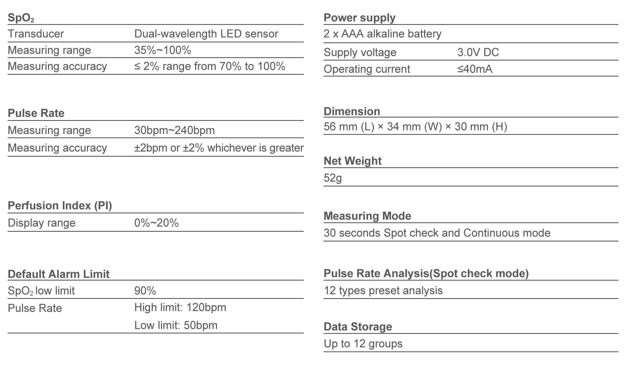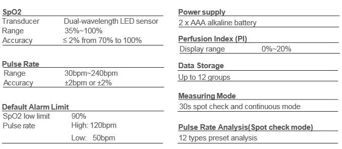 - OLED display of SpO2, PR, PI, Pulse bar and waveform